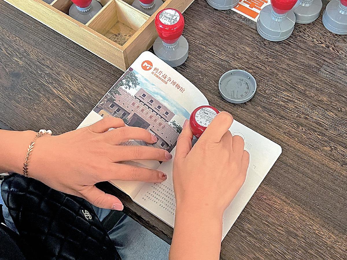 游客在東莞博物館聯(lián)盟主題郵局集戳蓋章。