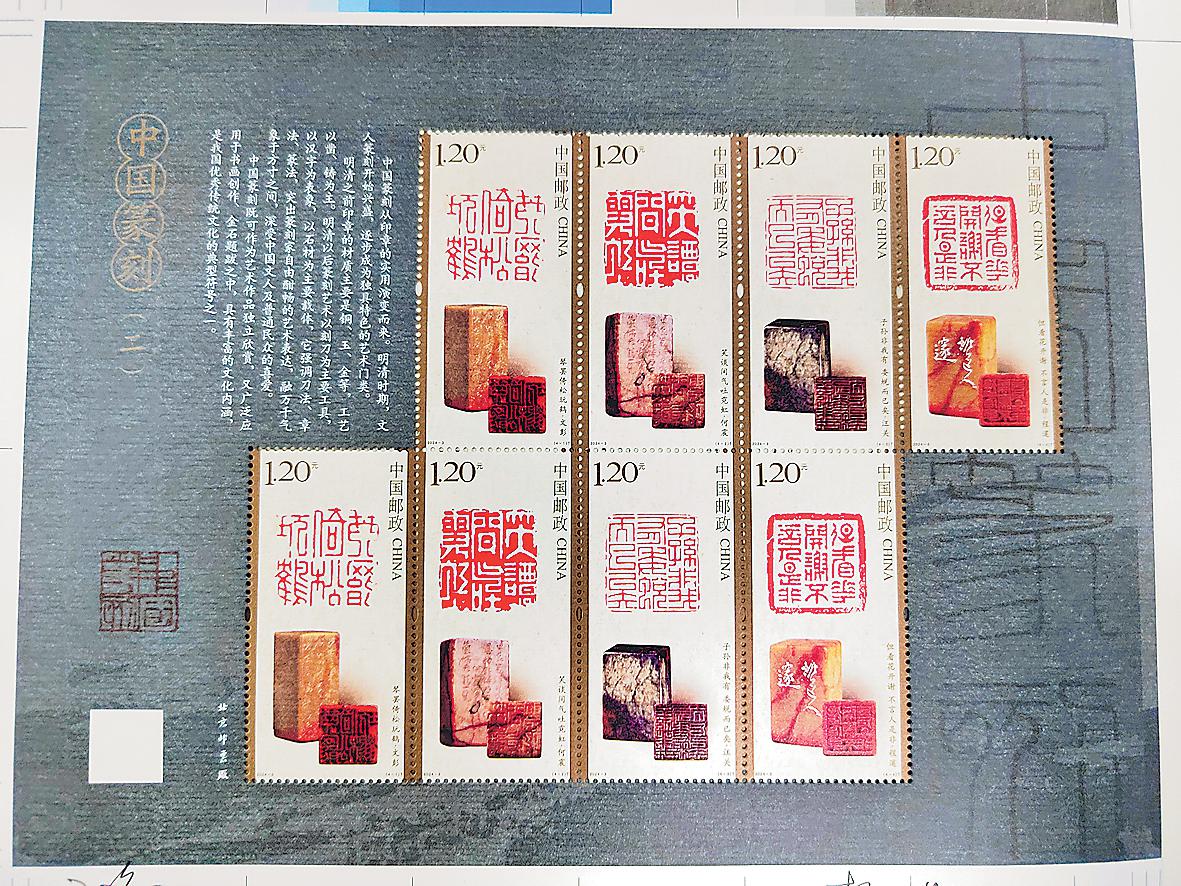 《中國篆刻(二)》特種郵票以獨特的印制工藝、特殊的油墨效果,加上細膩的宣紙質地,讓集郵愛好者在觀賞郵票時,感受到鈐印過程中“紋理盡合,似蟬蟲脫蛻”的獨特質感。