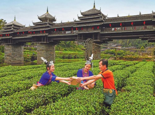 三江侗族自治縣郵政分公司投遞員走進田間,將郵件送到程陽八寨農戶手中。□曾祥文 攝