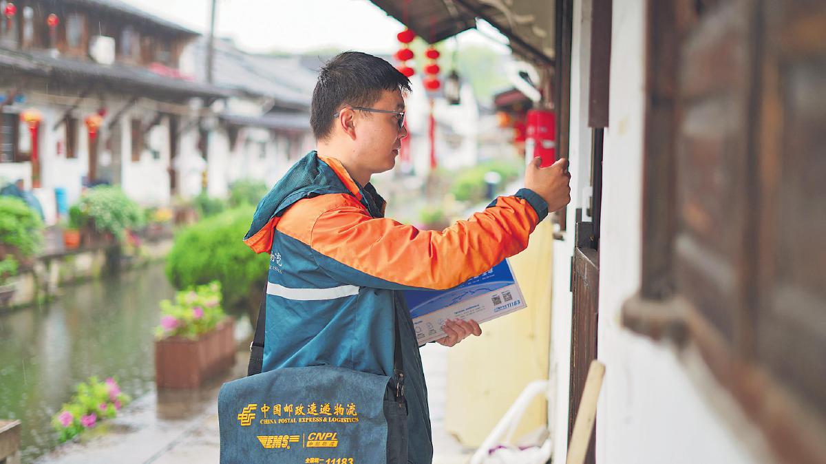 攬收郵件時,阮海良常與“郵掌柜”交流業務。