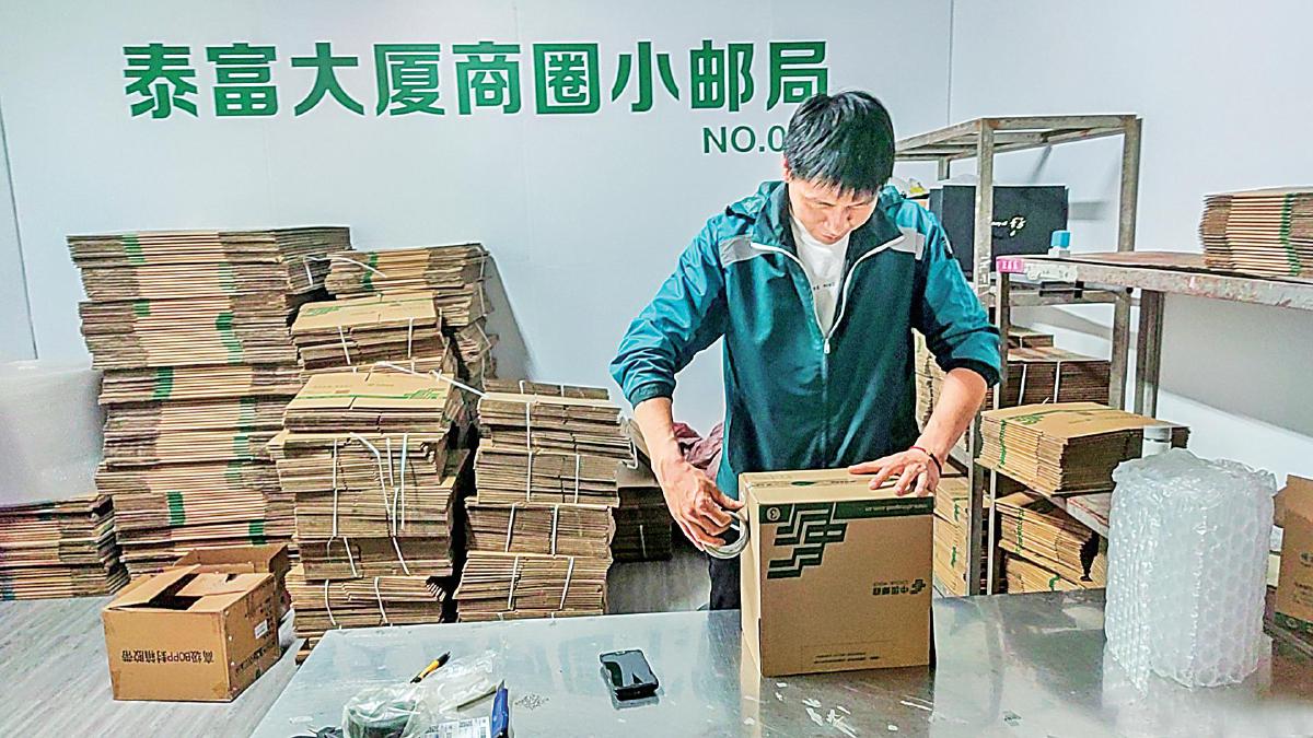 常州郵政在電商樓宇區(qū)域設(shè)立的小郵局可以快速攬收、前置發(fā)貨。