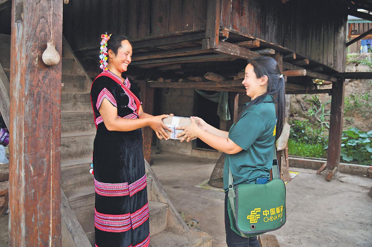 “是我們寨子的快遞到了嗎?”記者剛走進村郵站,一位身著藏青色對襟馬甲的哈尼族青年就聞聲趕來,他是班角老寨的郵件轉接員李玉華。村民的包裹由他統一簽收再轉交,這既省去了村民到14公里外的阿里村取包裹的麻煩,同時他也因郵政給予相應的報酬而增加了收入。