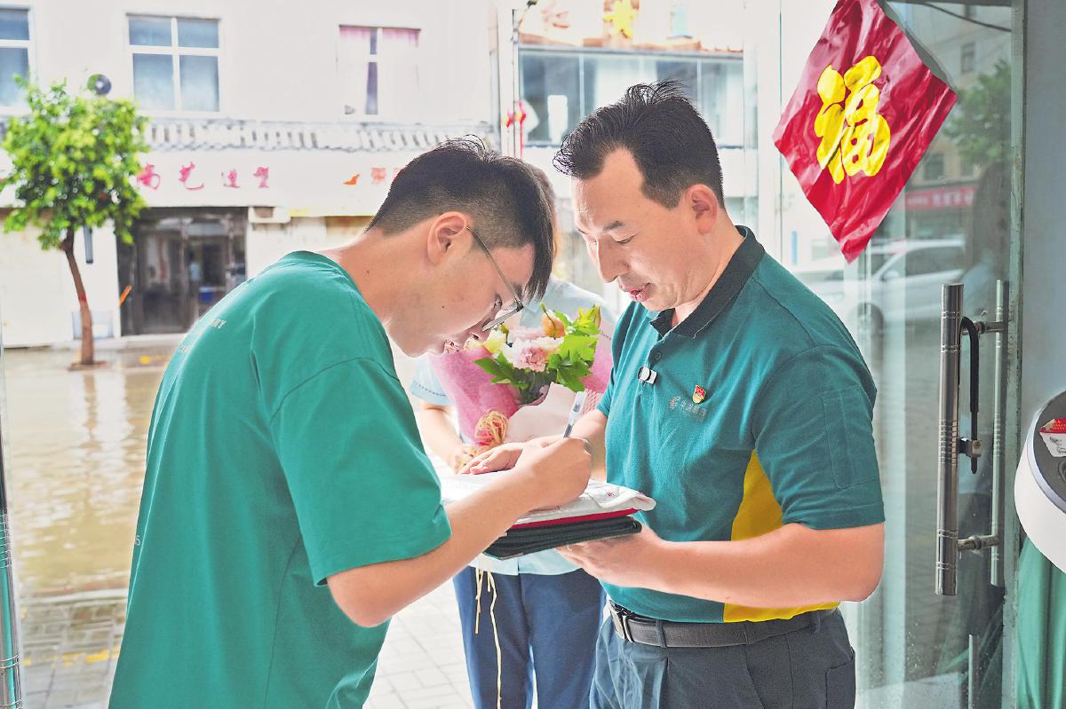 “您好!請問是楊同學(xué)嗎?您的北京大學(xué)錄取通知書到了……”日前,河南省商丘市郵政分公司攬投員喬金濤冒著暴雨將錄取通知書送到家住周集鎮(zhèn)周集村的考生楊同學(xué)的手中,這也是商丘市首封北京大學(xué)錄取通知書。7月15日以來,商丘市連降暴雨,部分路段積水嚴(yán)重。為確保錄取通知書能夠第一時間送到考生手中,商丘市郵政分公司采用專人專投方式,冒雨投遞。在實際投遞過程中及時調(diào)整投遞路線,盡可能減少因暴雨而增加的投遞時間。