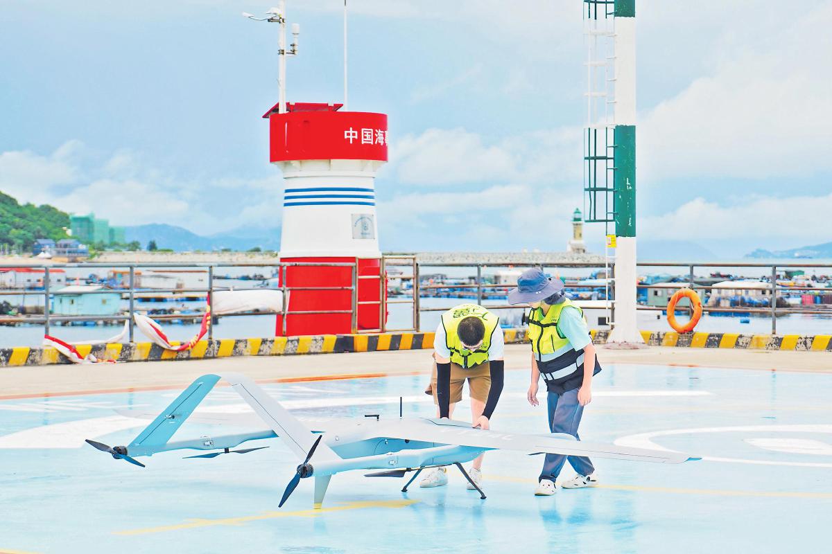 7月30日,廣東首條海島無人機郵路開通。10時40分,無人機從珠海市唐家港公共物流基地起飛,半小時后到達距離珠海市區(qū)30公里的桂山島。據(jù)介紹,過去裝載桂山島郵件的貨船要中午12點前后到達桂山島,郵件下午才能投遞。無人機郵路開通后,投遞員上午就能完成郵件投遞。珠海郵政將緊抓低空經(jīng)濟發(fā)展機遇,打造海島物流體系新格局,為海島軍民提供更加便捷、高效的用郵服務。圖為無人機停靠在桂山島停機坪的指定位置。