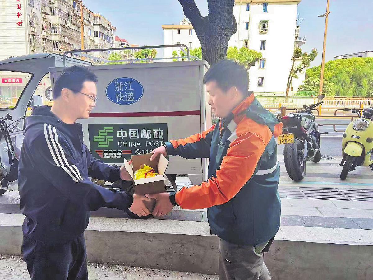 嘉興市分公司員工在約定時間上門收取客戶退件?!踔茜z