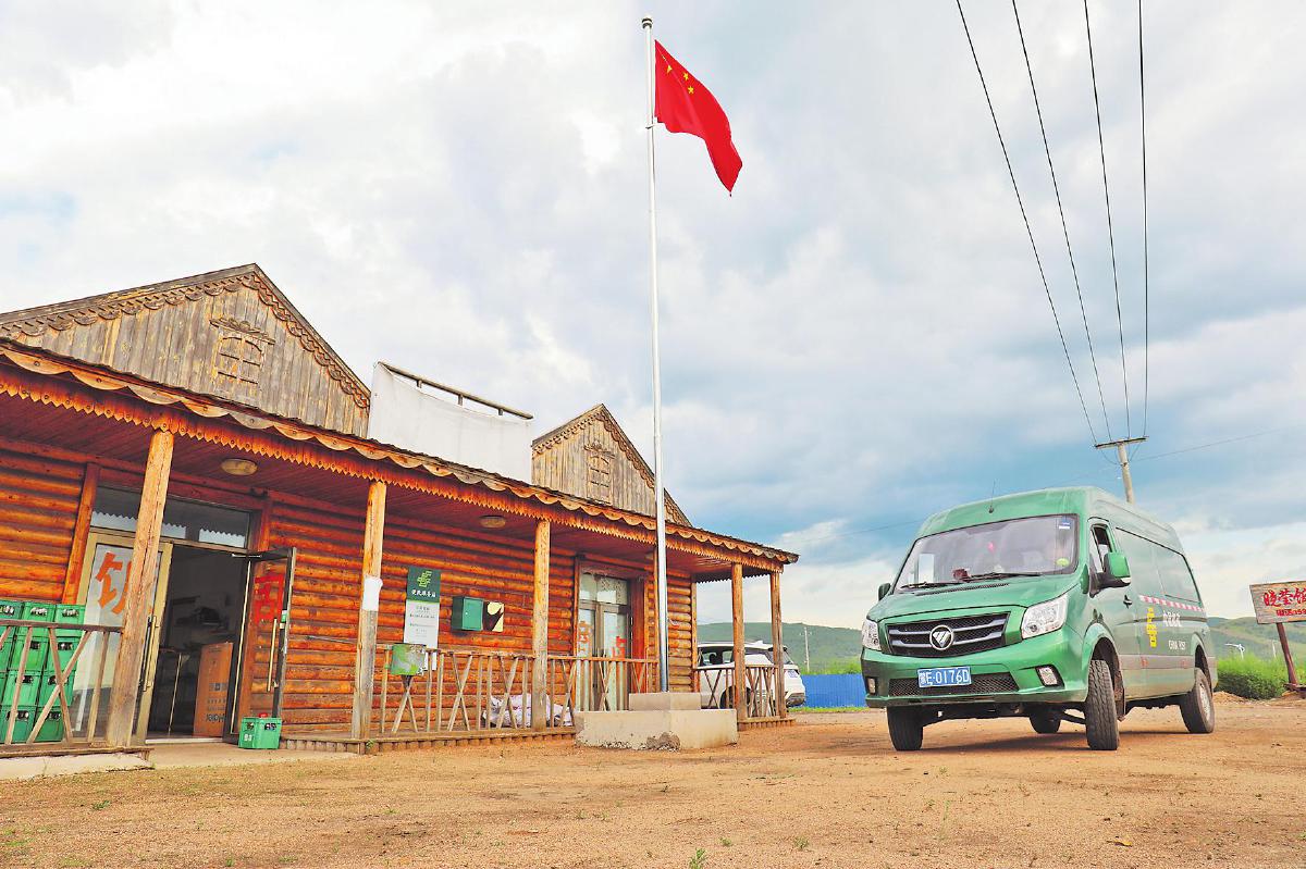 沿著額爾古納河一路前行,每隔一段距離就能看到醒目的標識牌——“請勿越界”。當一面鮮艷的國旗映入眼簾時,采訪組來到了此行的目的地——八卡村。八卡村地廣人稀、位置偏遠、交通不便,在邊境村通郵前,村民只能自行到100多公里外的額爾古納市取郵件,或由村民相互捎帶再到周邊鄉鎮去領取,費時費力,極不方便。如今,呼倫貝爾市郵政分公司在村口的曉瑩便利超市疊加了便民服務站點。看見郵車抵達,老板吳華北高興地跑出來接郵件。他笑著說:“現在村民來店里買東西時,就能順便取走包裹。郵政服務為老百姓帶來了很大的方便!”