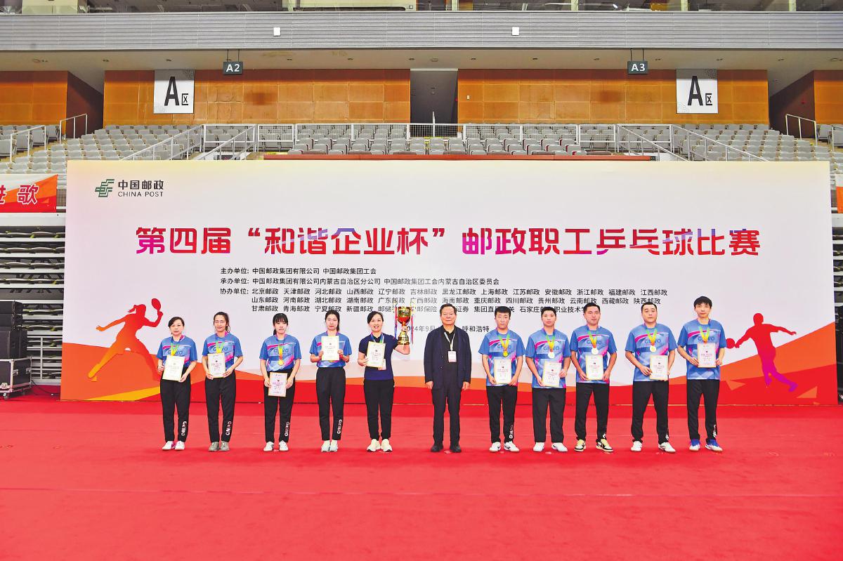金秋9月,激情碰撞在美麗的北疆。9月11—13日,由中國郵政集團有限公司、中國郵政集團工會主辦,內蒙古自治區郵政分公司、內蒙古郵政工會承辦的第四屆“和諧企業杯”郵政職工乒乓球比賽在呼和浩特市火熱舉行。中國信息通信體育協會主席田利民及中國郵政集團工會領導等出席開幕式并為獲獎選手頒獎。