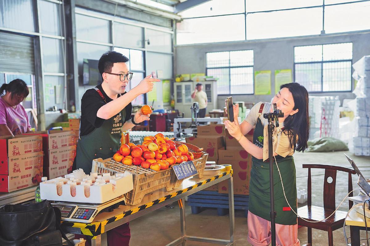 山東蒙陰被譽(yù)為“中國(guó)蜜桃之都”,其位于北緯35度的黃金水果帶,孕育出了享譽(yù)全國(guó)的蒙陰蜜桃。借助今年“919”郵政農(nóng)品節(jié),臨沂市郵政分公司充分發(fā)揮協(xié)同優(yōu)勢(shì),將產(chǎn)自紅色沂蒙山的蒙陰蜜桃作為助力鄉(xiāng)村振興的重點(diǎn)項(xiàng)目來(lái)推動(dòng),通過助農(nóng)直播、專項(xiàng)營(yíng)銷,讓蒙陰蜜桃走出山村、走向全國(guó)。“今天給大家推薦的是蒙陰黃金蟠桃,現(xiàn)摘現(xiàn)發(fā),主打一個(gè)新鮮……”在臨沂市分公司的網(wǎng)絡(luò)直播間,主播賣力吆喝,網(wǎng)友下單不斷。借助電商直播的熱潮,臨沂市分公司積極發(fā)展直播電商,布局線上渠道和直播帶貨資源。7月初正值蟠桃上市的季節(jié),也是蒙陰蜜桃最為熱銷的季節(jié)。臨沂市分公司抽調(diào)郵政業(yè)務(wù)部、寄遞事業(yè)部、直播團(tuán)隊(duì)的人員組成溯源直播小組,對(duì)接合作社、種植戶,開展選品組品工作,做好產(chǎn)品上架、宣傳;同時(shí),與市文旅局聯(lián)合開展直播推廣活動(dòng),宣傳視頻播放量超200萬(wàn)次。經(jīng)過預(yù)熱造勢(shì),直播當(dāng)天,短短1小時(shí)就銷售蜜桃4000余單。今年以來(lái),臨沂郵政直播團(tuán)隊(duì)累計(jì)銷售蒙陰蜜桃10萬(wàn)單,銷售額達(dá)260萬(wàn)元。“919”郵政農(nóng)品節(jié)期間,臨沂市分公司選擇“金皇后”黃桃為主打產(chǎn)品,搭配秋月梨,創(chuàng)新推出“桃梨滿天下”禮盒,圍繞教師節(jié)、中秋節(jié)開展線上推廣與銷售活動(dòng)。清晨6點(diǎn),在蒙陰蜜桃郵政倉(cāng)儲(chǔ)配送中心,桃農(nóng)已經(jīng)開始了一天的勞作。他們將采摘的桃子進(jìn)行摘袋、挑選,郵政工作人員則忙著裝箱、打包、發(fā)貨。“與郵政合作后,我們的桃子都是根據(jù)訂單現(xiàn)采現(xiàn)裝。郵政當(dāng)天就會(huì)把桃子運(yùn)走,無(wú)須存放,這可省去了我們很多麻煩!”蒙陰云蒙莊怡生態(tài)農(nóng)業(yè)專業(yè)合作社負(fù)責(zé)人侯克生高興地說。