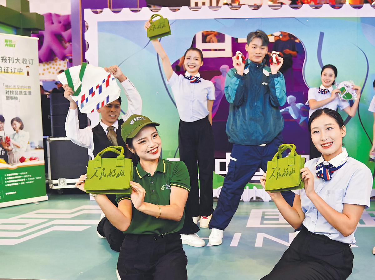 10月7日,海南省郵政分公司以“美好生活‘郵’樂同享”為主題,在海口友誼陽光城舉辦第55屆世界郵政日宣傳活動。活動現(xiàn)場設(shè)立臨時郵局,推出“郵政故事知多少”互動游戲和“郵”文化潮流驛站快閃舞蹈表演,讓廣大市民在參與互動中更好地了解和體驗(yàn)郵政的優(yōu)質(zhì)服務(wù)。圖為“郵”文化潮流驛站快閃舞蹈表演場景。