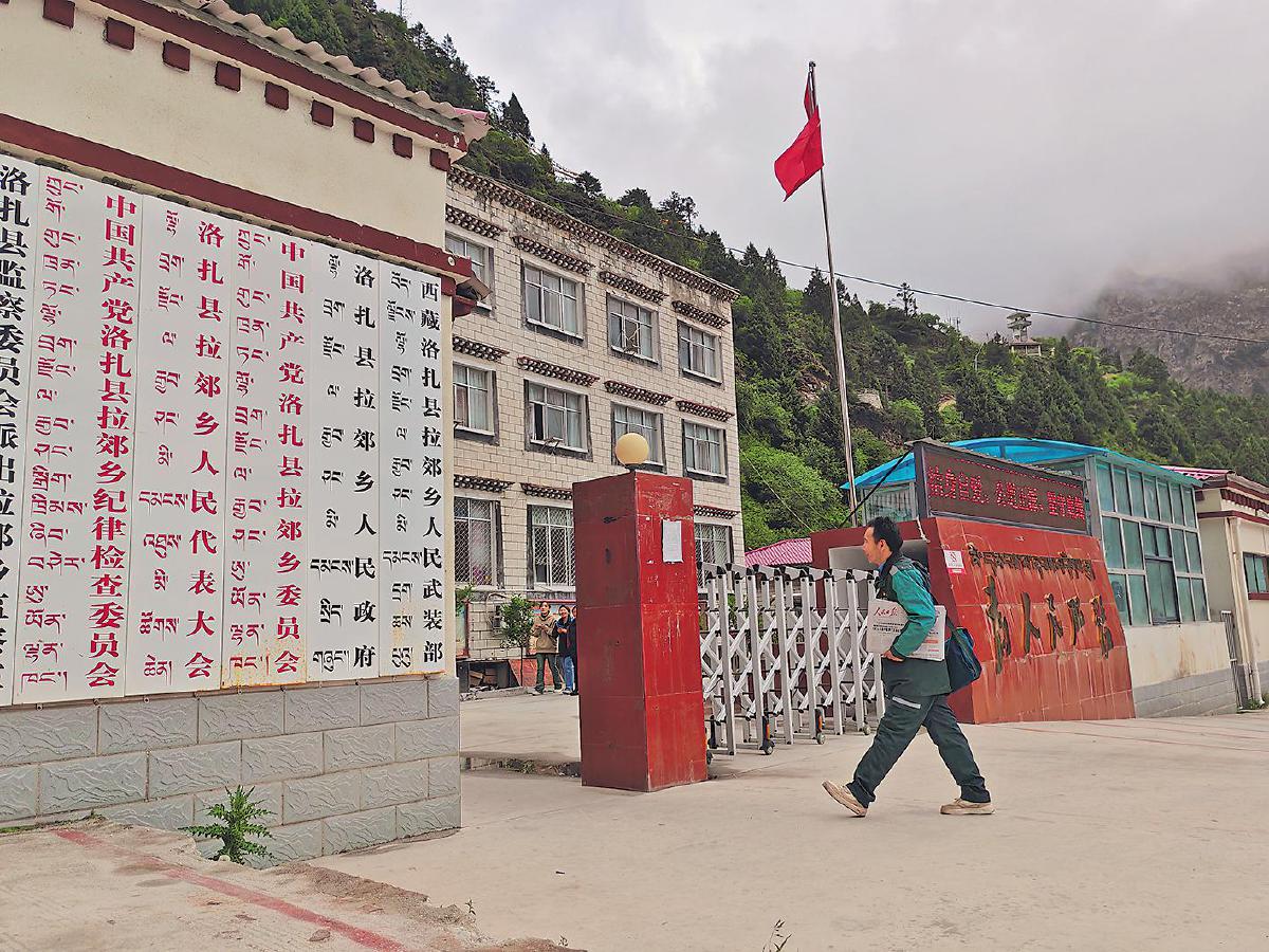 郵政投遞員為西藏洛扎縣拉郊鄉(xiāng)政府送去黨報黨刊。 □呂文禮 攝