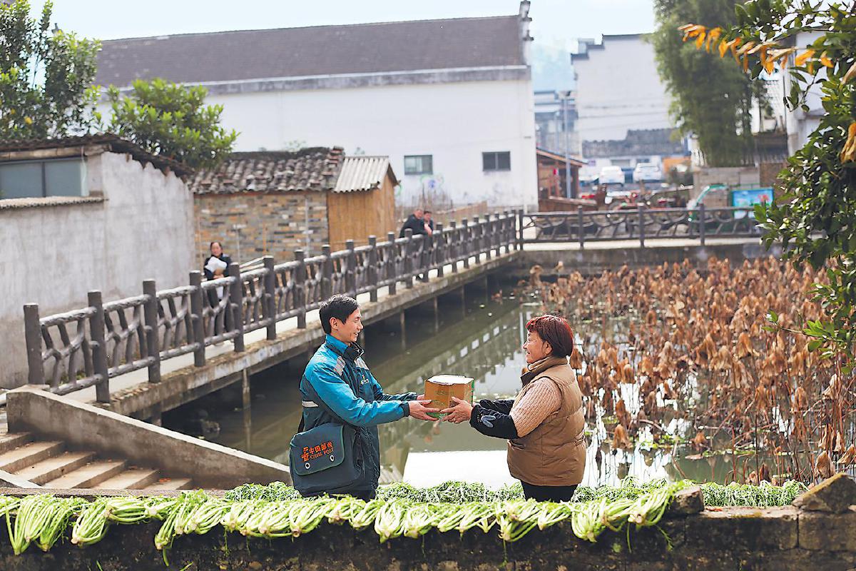 新時代,中國郵政在普遍服務上突出“政”字要求,堅持提質(zhì)增效,持續(xù)豐富服務新內(nèi)涵、新供給,將普遍服務融入鄉(xiāng)村振興、共同富裕等國家戰(zhàn)略,在服務國家發(fā)展大局中貢獻郵政力量。目前,中國郵政擁有遍布城鄉(xiāng)的5.4萬個網(wǎng)點、40多萬個便民服務站,鄉(xiāng)鎮(zhèn)網(wǎng)點覆蓋率和建制村通郵率均保持100%,全國3461個邊境村全部直接通郵,成為“鄉(xiāng)鄉(xiāng)設所、村村通郵”的唯一央企。通過加快三級物流體系建設,中國郵政建成1188個縣級共配中心、6460個鄉(xiāng)鎮(zhèn)共配中心、43萬個村級綜合便民服務站,郵快合作建制村覆蓋率為77%,與205個城鄉(xiāng)交通一體化重點示范縣合作,開通交郵聯(lián)運線路4546條,農(nóng)村投遞周五班及以上頻次占比為69%,農(nóng)村投遞汽車化率顯著提升,進一步暢通農(nóng)產(chǎn)品出村進城、消費品下鄉(xiāng)進村雙向流通渠道。今年上半年,中國郵政快遞進村業(yè)務量達26億件、同比增長46%,網(wǎng)絡銷售農(nóng)產(chǎn)品96.3億元、同比增長33.6%,實現(xiàn)“小包裹服務大民生”,促進“小農(nóng)品對接大市場”,推動“小產(chǎn)業(yè)融入大循環(huán)”。