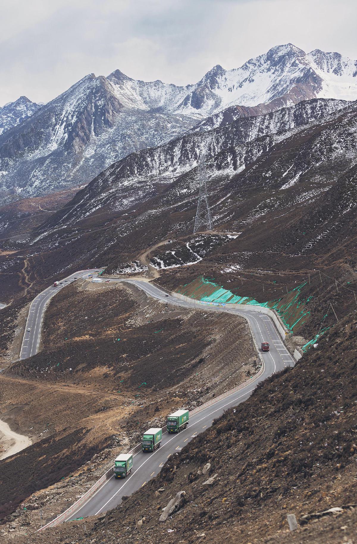 郵車翻越“雪線郵路”上的折多山。 □呂文禮 攝