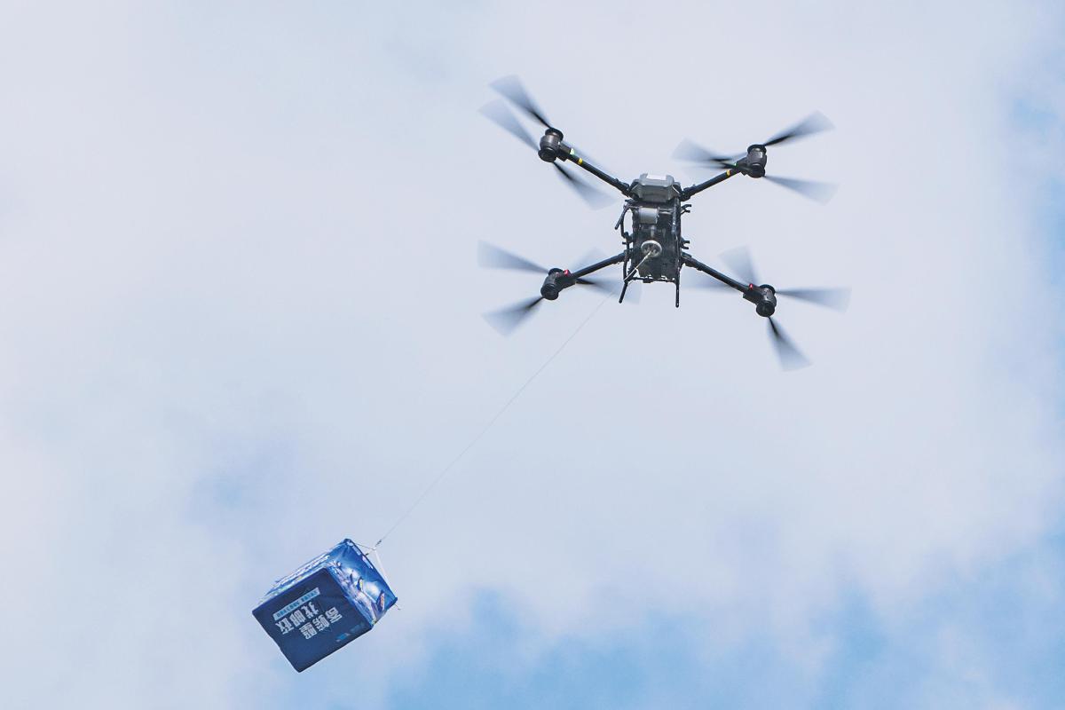 郵政應用無人機運送新鮮捕撈的大閘蟹。□張劍銘 攝
