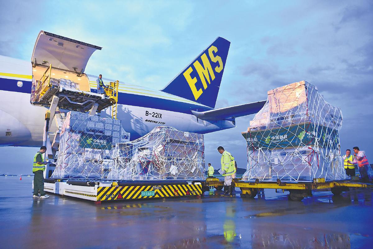 中國郵政引進B777F全貨機,成功開通“南京—盧森堡”洲際航線。 □張晨昱 攝