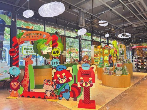 北京野生動物園主題郵局處于園內猛獸區下車站的顯眼位置,設計和裝飾上巧妙地融入了動物風格元素,仿佛是動物王國的入口?!爸黝}郵局的設計,是吸引游客的一大亮點,以鮮明的動物IP形象為核心,比如萬人迷的‘小熊貓局長’、沉穩的‘卡皮巴拉郵遞員’以及身手靈活的‘黑猩猩快遞員’等。各種動物元素和郵政元素的結合,讓游客在體驗郵政服務的同時,也能享受無盡樂趣。”北京野生動物園主題郵局負責人高茜介紹道。