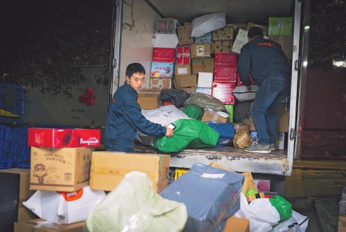 20點,又有一輛郵車載著來自四面八方的郵件向小南街攬投部駛來。在寒冷的夜晚,快遞小哥們迎來了當天的最后一趟加車……