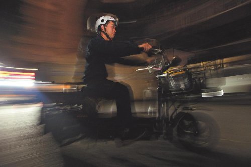 上午9點,一輛輛滿載郵件的電動車陸陸續續從攬投部駛出,每輛電動車的尾部都嵌有方形塑膠箱子。為了提高投遞效率,劉孜力和伙伴們放棄了裝載量更大的三輪車,利用“瘦身”的電動車多次快速穿梭在人流擁擠的大街小巷,盡管每次只能運載五六十件郵件。
