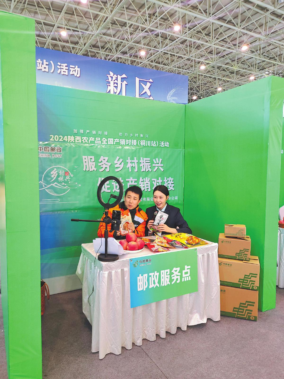 11月20日至22日,由陜西省商務(wù)廳、中國蔬菜流通協(xié)會(huì)和銅川市政府主辦的“2024陜西農(nóng)產(chǎn)品全國產(chǎn)銷對(duì)接(銅川站)活動(dòng)”在銅川市舉辦。銅川市郵政分公司以“加強(qiáng)產(chǎn)銷對(duì)接助力鄉(xiāng)村振興”為主題,成立了服務(wù)農(nóng)產(chǎn)品全國產(chǎn)銷對(duì)接活動(dòng)小組,現(xiàn)場(chǎng)設(shè)置郵政服務(wù)點(diǎn),并通過郵樂直播推介銅川蘋果、醬牛肉、椒麻雞等特色農(nóng)產(chǎn)品,得到地方政府及相關(guān)部門的稱贊。