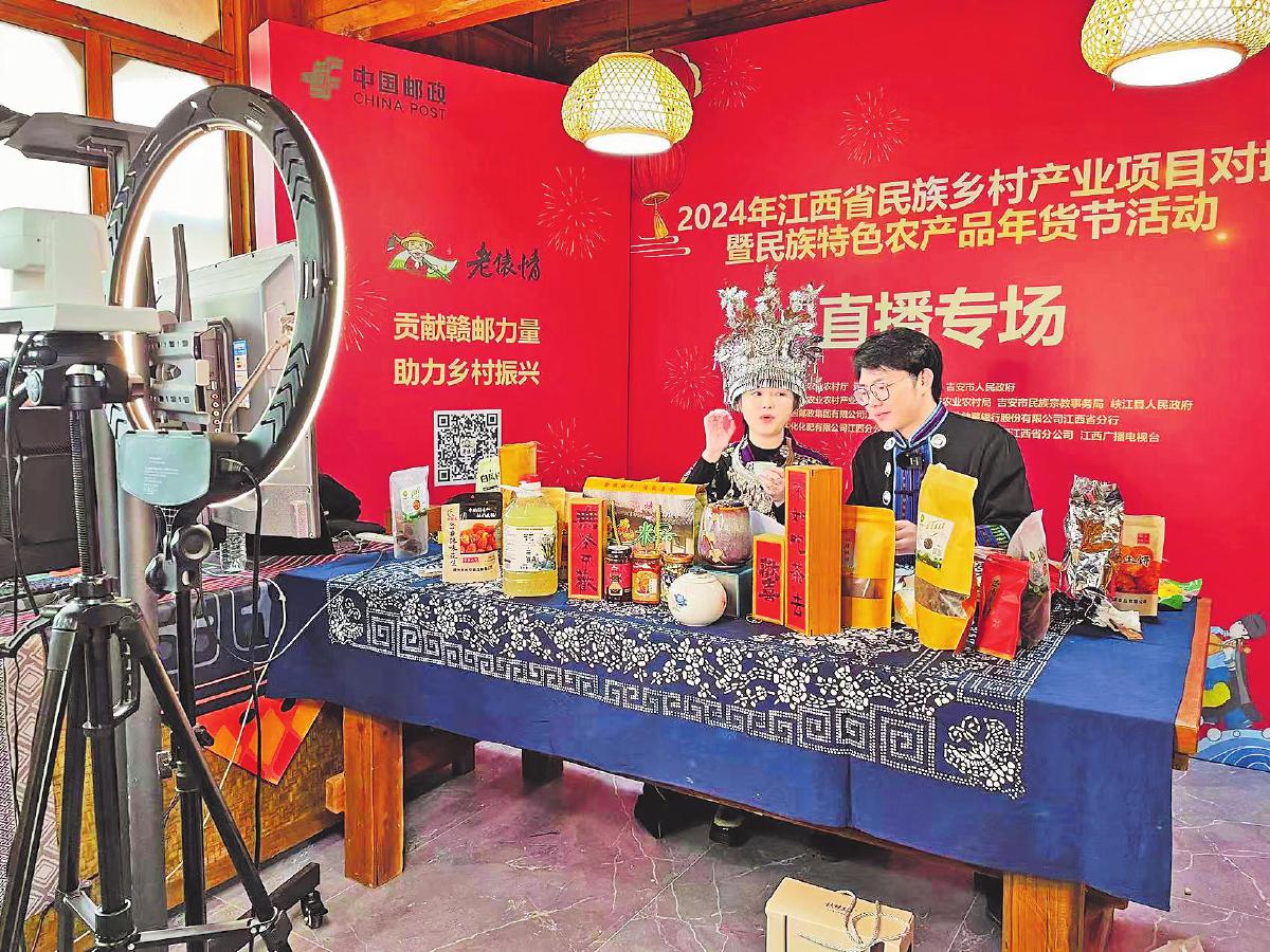 郵政農品直播走進江西特色農產品年貨節。□周芳 攝