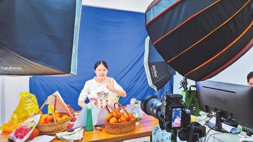 平樂郵政主播在電商直播間推介柿子系列產品。  □唐何溪 攝