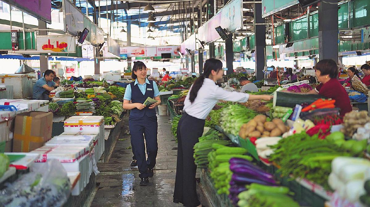 上午9點(diǎn),陽光透過市場(chǎng)的棚頂,斑駁地灑落在濕漉漉的地面上,空氣中彌漫著新鮮蔬菜和水果的香氣。在廣東省深圳市龍華區(qū)觀瀾綜合菜市場(chǎng),人潮開始涌動(dòng),一座城市剛剛醒來。深圳市龍華區(qū)郵政分公司的“郵金智聯(lián)隊(duì)”成員手持宣傳單,向菜攤逐個(gè)推介著。