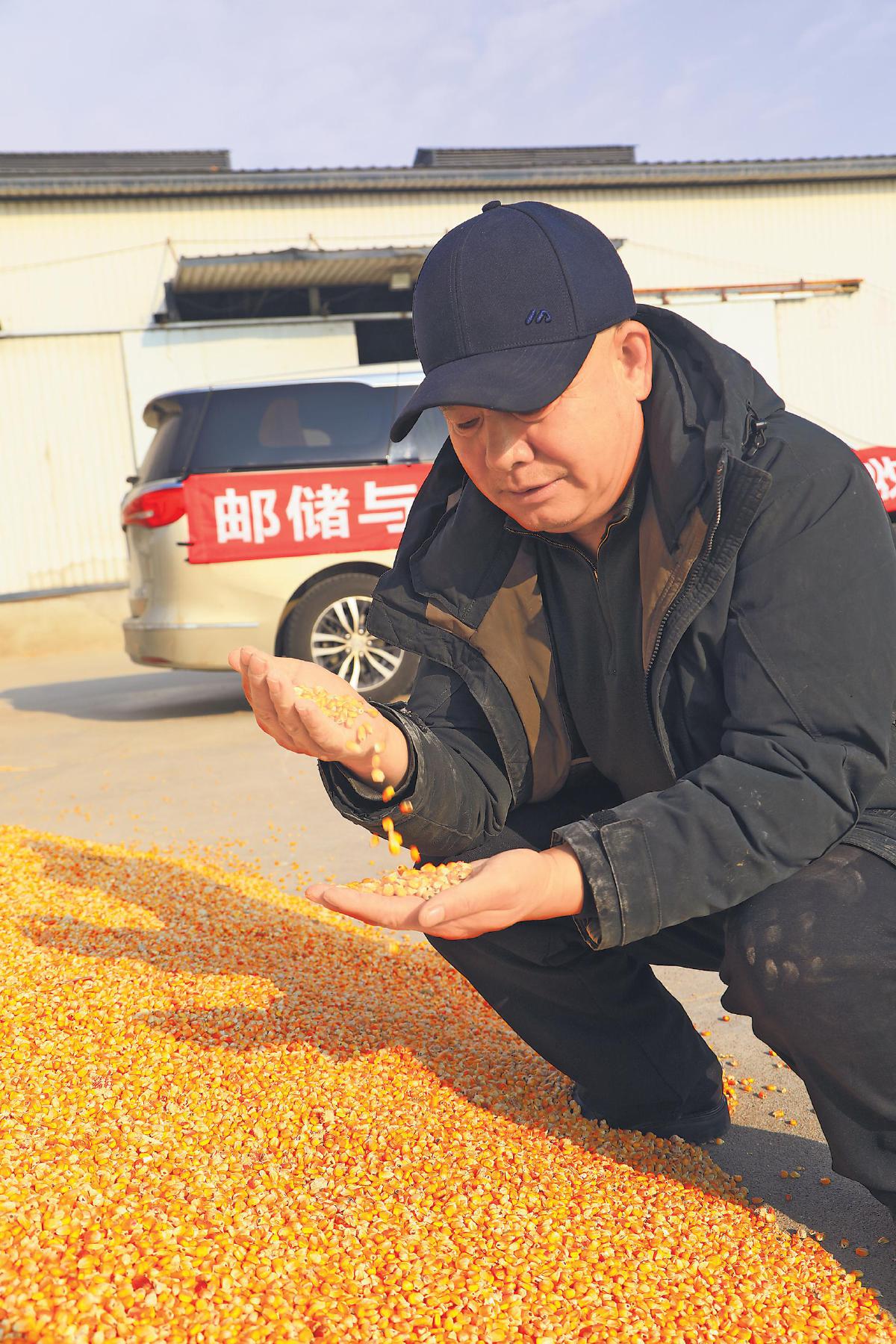 陳景彬正在察看新收的玉米。