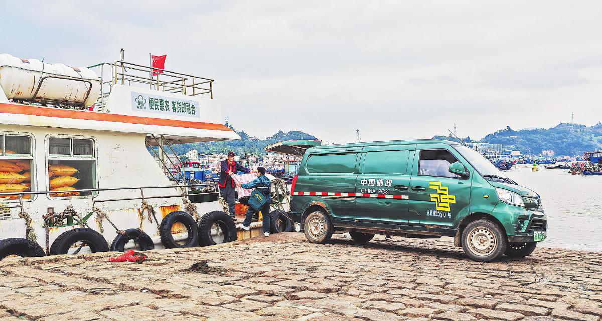 截至12月20日,福建省寧德市郵政分公司已建成客貨郵融合中心鄉鎮站點81個、村級站點1059個、“交郵聯運”線路25條,快遞進村業務量達1651萬件,比2023年增長53%。在大力推進客貨郵融合項目中,寧德郵政積極對接交通運輸部門,開通全省首條“海上客貨郵融合線路”,推行水陸聯動新模式,為海島居民和海上養殖戶提供貼心服務。圖為在霞浦縣下滸鎮外滸碼頭,郵政員工與客運班船工作人員進行郵件交接。