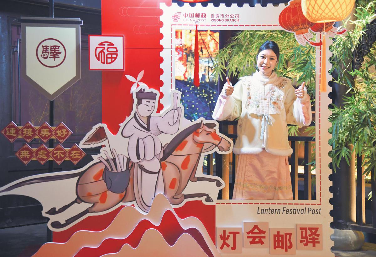 1月17日,四川省自貢市第31屆自貢國際恐龍燈會正式開幕。五彩斑斕的燈光交織輝映,勾勒出如夢似幻的奇妙景致。璀璨燈海中,全新亮相的彩燈郵驛別具一格,精心規劃了集郵、文創產品、明信片、特色風景戳加蓋、自貢特色冷吃系列美食以及郵寄服務六個特色專區,為游客呈上一場集文化、美食與便捷服務于一體的盛宴,成為燈會的熱門打卡地。
