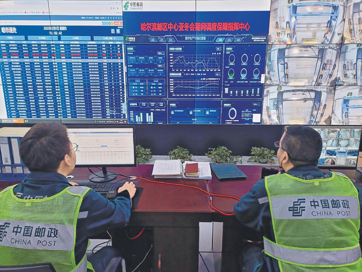 高效、精準服務的背后,有一批默默無聞的幕后英雄,他們奮戰在投遞路上,拼搏在郵件處理一線,堅守在監控系統旁邊……在服務亞冬會過程中,黑龍江省分公司根據各賽區主題郵局位置,對賽時郵件處理、物品寄遞、郵路運行進行整體規劃,統一配置專人、專車,落實郵路安全措施;強化抵離服務保障,為抵離物品提供綠色通道,客服人員實時跟蹤運輸軌跡,確保郵件安全抵達;圍繞亞冬會賽事用郵需求,在兩大賽區所在地建成倉儲物流中心,配備專業管理人員,全力開展倉內管理、車輛管理以及通清關等服務工作。