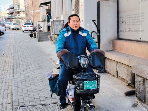 凌晨4點多,當許多人還沉浸在夢鄉時,全國人大代表、中國郵政集團有限公司遼寧省大連市中山區寄遞事業部勝利橋普郵部攬投員趙明枝已然換好綠色工作服,載著一摞摞報刊書信,跨上電動車,融入還未破曉的夜色中。