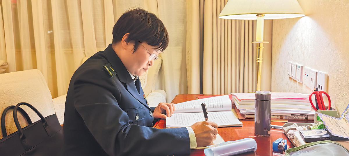 “她”力量是堅守與奉獻。今年,北京市郵政分公司員工王姜婷第四次駐守服務全國兩會。華燈初上,她仍在俯首整理郵品,服務柜臺的燈光常亮至晚上八九點。從紀念封到郵冊、從紀念章到文創產品,她經手的每件郵品都承載著兩會印記?!醵》拧●R佳玉 攝影報道