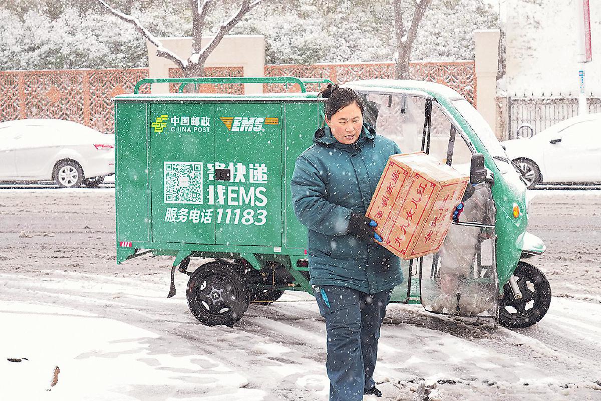 “她”力量是勇敢與堅韌。近日,河南迎來了“桃花雪”,面對投遞路上的困難,河南省商丘市郊區郵政分公司南京東路攬投部投遞員李長娥,冒著凜冽寒風與紛飛雪花,將快遞包裹按時送到客戶手中。她的身影也成為雪天里一道令人動容的“風景”。□何水清 攝影報道