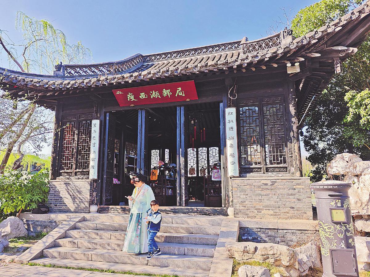 春日里,古色古香的瘦西湖郵局宛如一幅精美的江南畫卷。