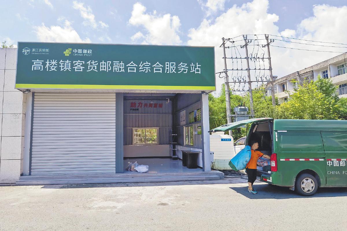 在浙江瑞安高樓鎮客貨郵融合綜合服務站,郵政投遞員正在裝卸郵件。 □李哈妮 攝