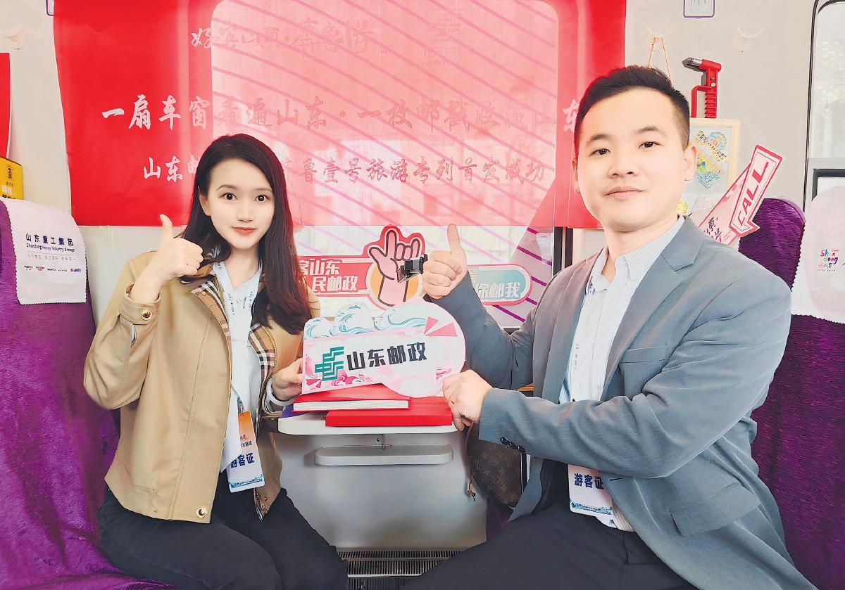4月10日,“好客山東·齊魯1號”旅游專列首發。山東省濟南市郵政分公司以“一扇車窗看遍山東、一枚郵戳收藏山東”為主題,在車內設置文創展區,展出40余款融合山東文旅特色的集郵文創產品,吸引了參加首發活動的山東省有關部門領導駐足參觀并給予高度評價。