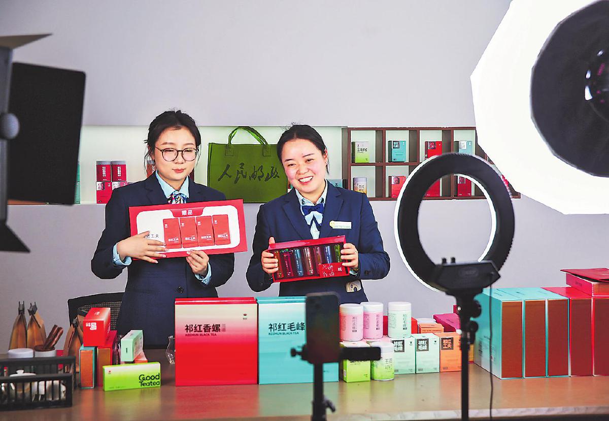 祁門縣郵政分公司員工開展祁門紅茶溯源直播。□徐雷 攝