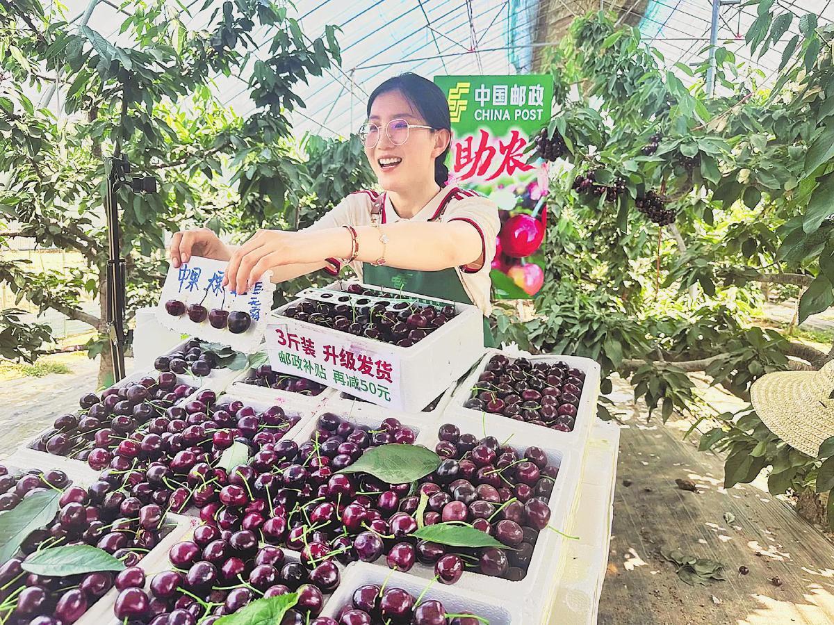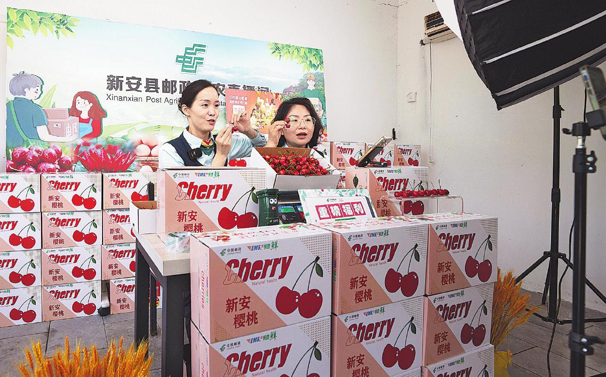 洛陽郵政直播團(tuán)隊(duì)助銷新鮮櫻桃。