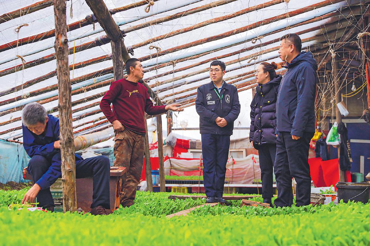 漠河市支行工作人員走訪大棚早春蔬菜種植客戶,宣傳貸款業務。