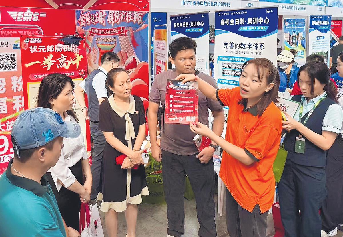 近日,2025年廣西普通高校招生咨詢會在南寧市國際會展中心舉行。南寧郵政以“固定展位+流動宣傳”的方式,為考生及家長講解高考錄取通知書的查詢流程,并提供郵政寄遞、金融業務咨詢和文創產品展銷等服務。活動中,郵政工作人員耐心解答每位咨詢者的問題,并詳細記錄需求信息,將實行后續跟蹤服務。