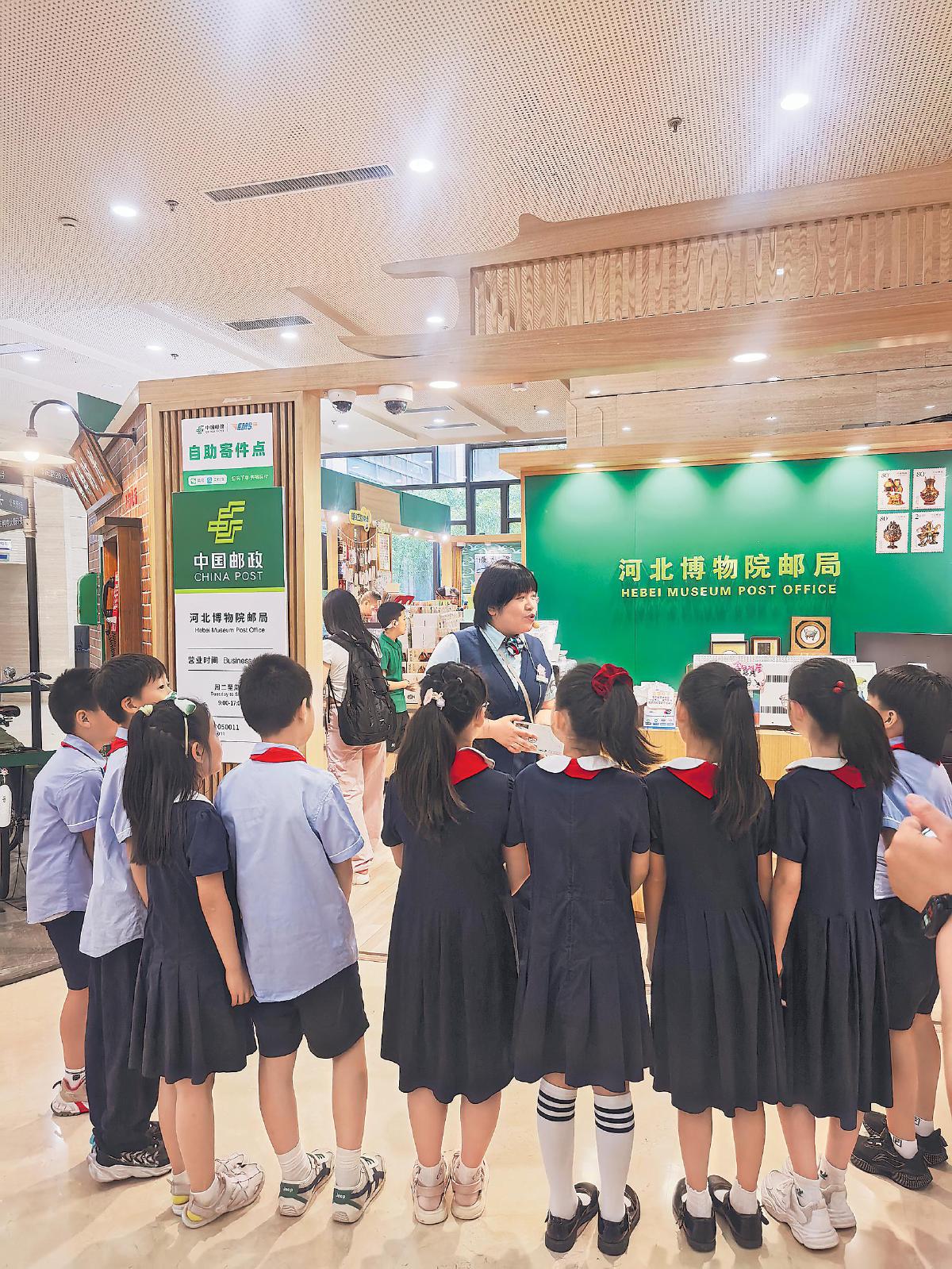 研學活動區,孩子們正認真聆聽“博物院里為什么有郵局”研學課程,了解文物與郵票的知識,參與蓋戳、填寫明信片并寄出的活動。今年以來,河北博物院主題郵局已舉辦10余場研學活動,參與人數突破5000人次。