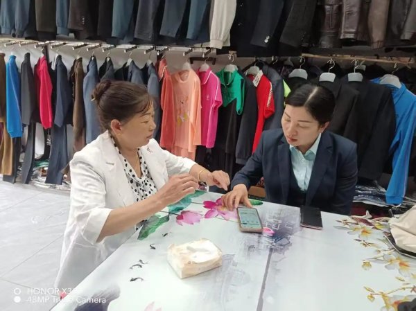 劉明翠為商戶介紹產品。