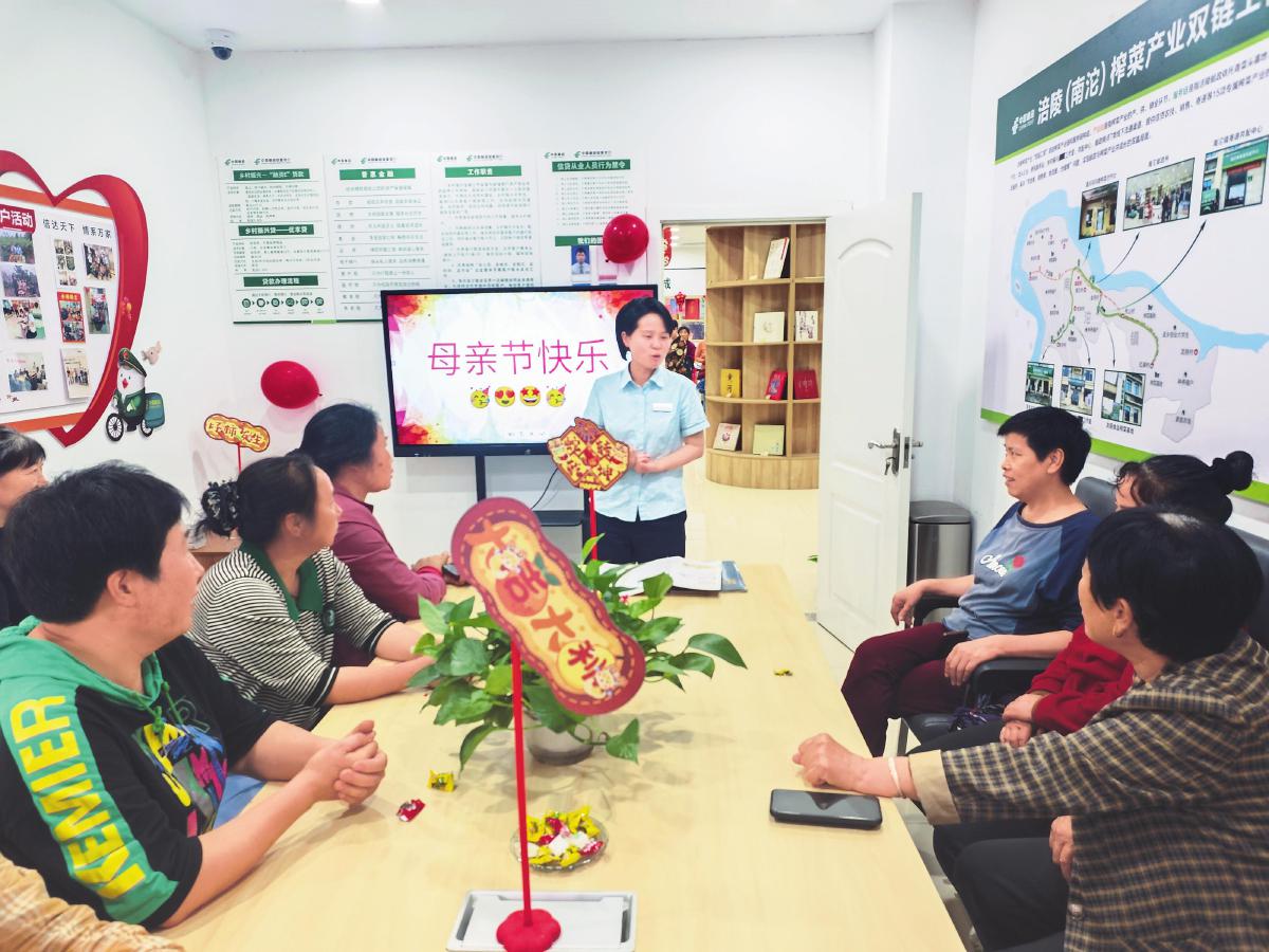 除了加強(qiáng)站點(diǎn)運(yùn)營管理,南沱郵政所還設(shè)有政務(wù)服務(wù)專窗,疊加代辦稅務(wù)、社保、交管等政務(wù)服務(wù),并開辟出一間鄉(xiāng)村振興工作室。冉冰每周會與郵儲銀行涪陵區(qū)支行客戶經(jīng)理蘇桃溝通交流,或協(xié)同處理“融資E”貸款、對公賬戶業(yè)務(wù),或一起走訪產(chǎn)業(yè)客戶、商戶、小企業(yè)主,或一起進(jìn)村開院壩會,共同推進(jìn)“村社戶企店”客群開發(fā)。