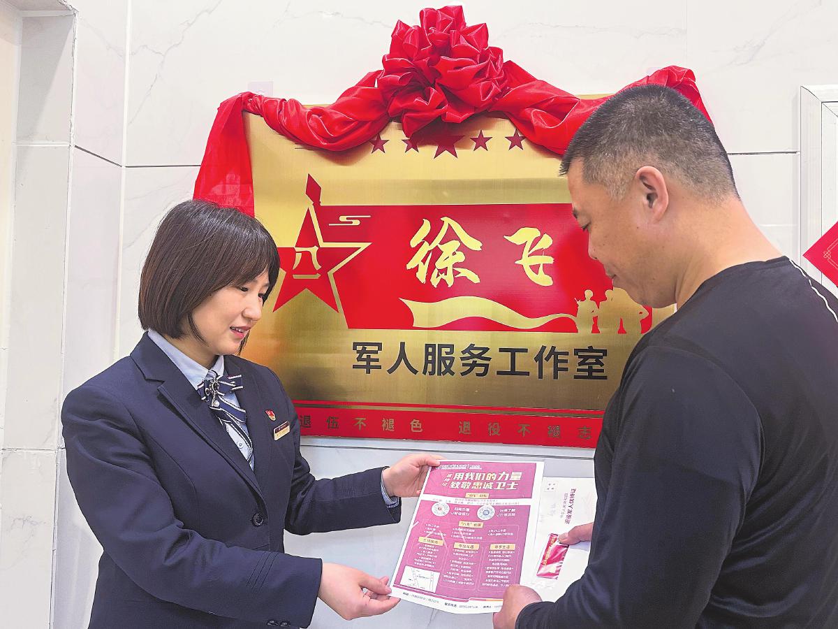 2023年4月,“徐飛軍人服務工作室”正式成立,旨在為現役軍人、退役軍人及其家屬提供“專屬、優先、優質”的金融服務。“我們希望讓現役軍人、退役軍人及其家屬能夠享受到更加優質、高效、便捷的金融服務,為他們解除后顧之憂,讓他們在經濟生活中也能感受到國家和社會的關懷與尊重。”徐飛說。