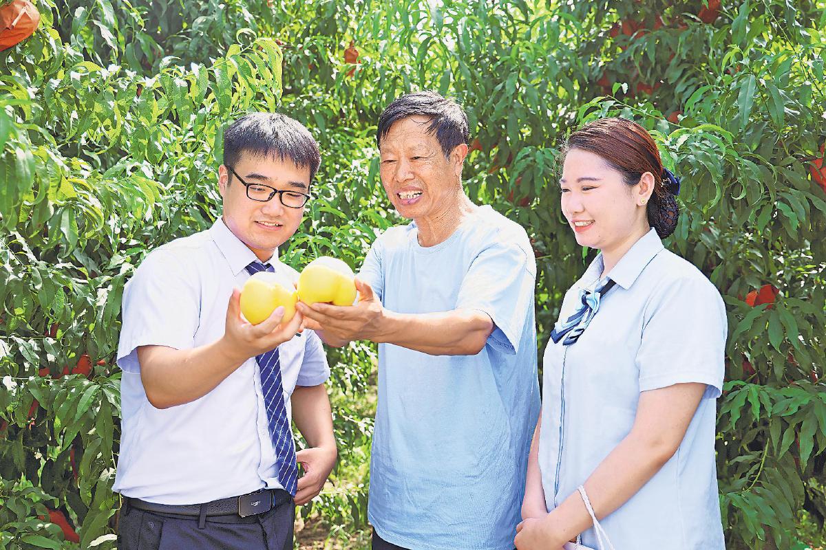 近日,在河北省廊坊市永清縣富民合作社的桃子豐收之季,郵儲銀行永清縣支行客戶經理深入桃園,詳細了解桃子的長勢,與果農分享豐收的喜悅,并向果農講解綜合金融服務方案,為其解決“融資難”“結算難”“記賬難”等問題。