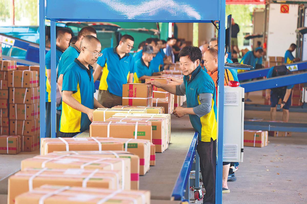 在大華山鎮(zhèn)攬收點,桃農(nóng)李大姐的鮮桃剛剛褪去專用紙袋過秤稱重,面單信息便通過PDA實時錄入系統(tǒng),隨即鮮桃被裝入印有“郵政農(nóng)品”標(biāo)志的定制快遞箱,開啟了郵寄旅程。“我們負(fù)責(zé)這片區(qū)域的10個村,郵件在站點完成前置分揀,按同城、外省分類,8點半前裝車直發(fā)本區(qū)處理中心,不再繞道市里中轉(zhuǎn)。”閆雷解釋道。這種“收寄—前置分揀—直達(dá)本區(qū)”的直封直發(fā)模式,是今年提速的關(guān)鍵。各區(qū)團(tuán)隊每天6點前到崗,確保8點至8點半的“同城當(dāng)日遞”首頻次郵件準(zhǔn)時發(fā)出。