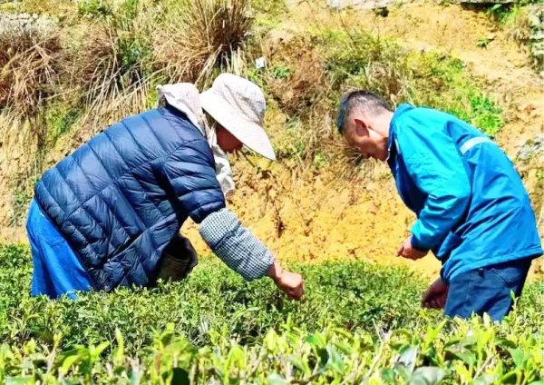 郵政工作人員助茶農搶摘春茶。