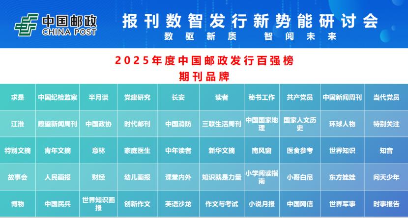 會上,集團公司報刊發(fā)行局發(fā)布了備受關(guān)注的“2025年度中國郵政發(fā)行百強榜”,包括《人民日報》、《光明日報》在內(nèi)的40家報紙品牌,《求是》、《中國紀檢監(jiān)察》等50家期刊品牌,以及參考消息數(shù)字報、人民日報健康客戶端等10家數(shù)媒品牌上榜。此次百強評定綜合考慮了郵發(fā)報刊的發(fā)行量、品牌影響力、媒體融合發(fā)展的貢獻度等多個指標。此外,報刊發(fā)行局在此次會上還與河南日報報業(yè)集團、《人民論壇》雜志社、中國交通報社、中國農(nóng)業(yè)出版社、中航出版?zhèn)髅接邢挢熑喂疽约啊敦斀?jīng)》雜志等多家單位簽訂戰(zhàn)略合作協(xié)議,標志著中國郵政在報刊數(shù)智發(fā)行領(lǐng)域合作網(wǎng)絡(luò)的進一步拓展。