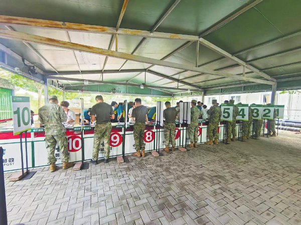 在臨時服務網點,官兵們用郵秩序井然。