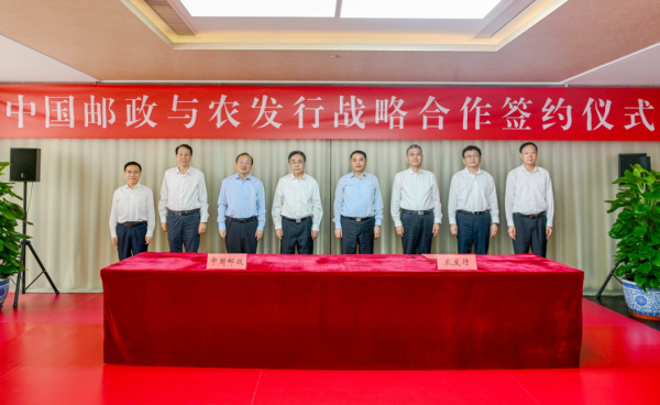 9月16日,中國郵政集團有限公司與中國農業發展銀行(以下簡稱農發行)在中國郵政集團總部簽署戰略合作協議。中國郵政集團有限公司黨組書記、董事長劉愛力,黨組副書記、總經理鄭國雨,與農發行黨委書記、董事長湛東升,黨委副書記、行長張小東舉行工作會談,并共同見證簽約。中國郵政集團有限公司黨組成員、副總經理王儉,農發行黨委委員、副行長吳濤分別代表雙方簽署協議。雙方相關部門負責同志出席。