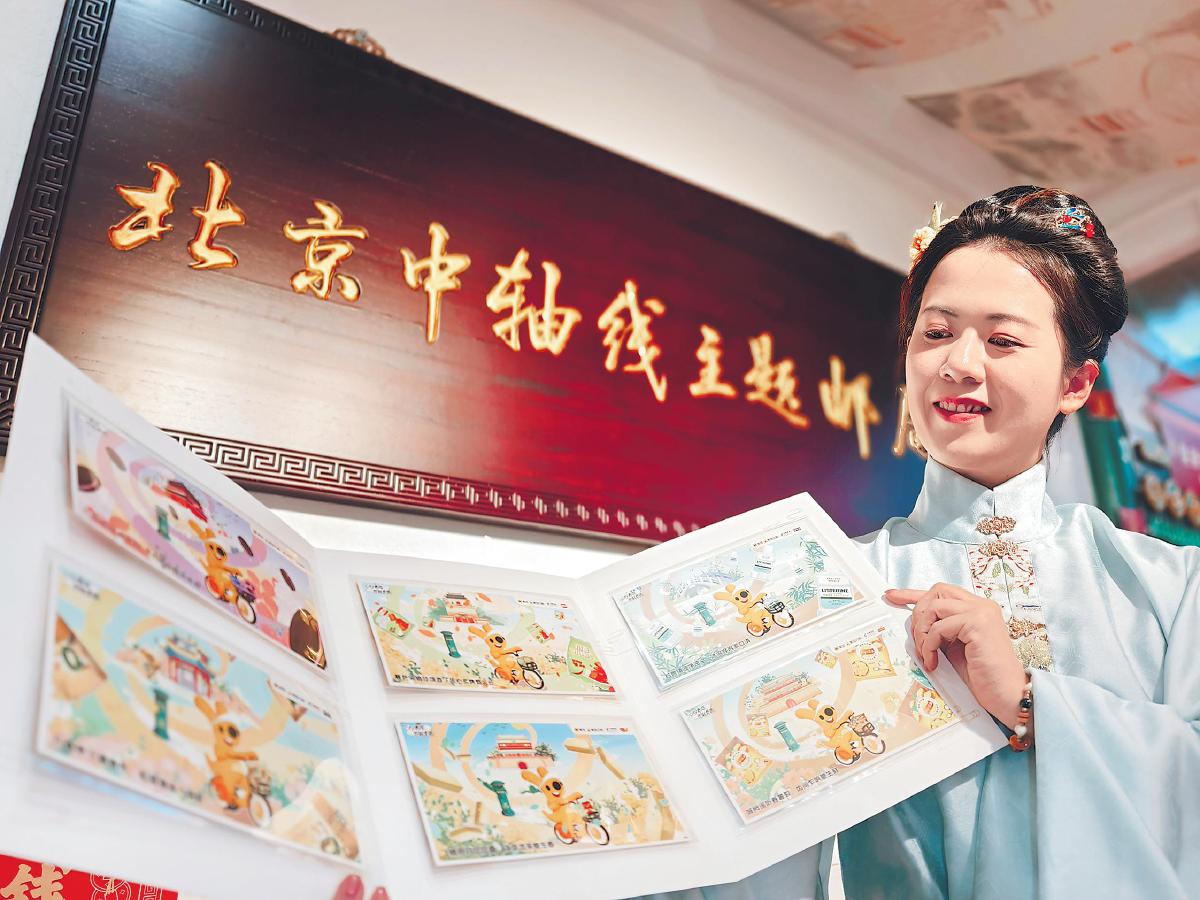 北京中軸線申遺成功,主題郵局迎來了新的發展契機,推出了一系列備受追捧的集郵和函件產品。“我們推出了北京城樓記憶明信片等產品,使用名家畫作,結合‘城磚’的獨特創意,希望為北京中軸線的保護與創新工作添‘磚’加瓦。”薛素潔指著展示架上的產品介紹道。目前,該主題郵局已開發了200多種中軸線文創產品,包括懷舊的107路電車冰箱貼等。市民張女士慕名而來,她表示:“這個冰箱貼源于皇家建筑上的脊獸,太可愛了!作為老北京人,我對中軸線特別有感情,特意和姐妹們相約沿著中軸線打卡。”